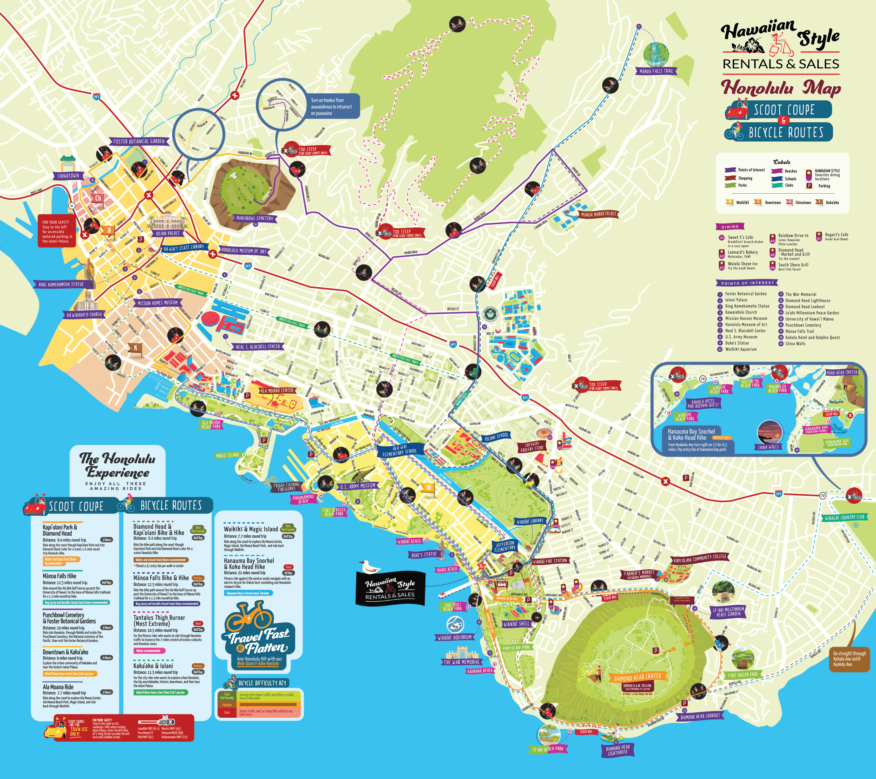 Honolulu Town Map for Scoot Coupes and Bicycles